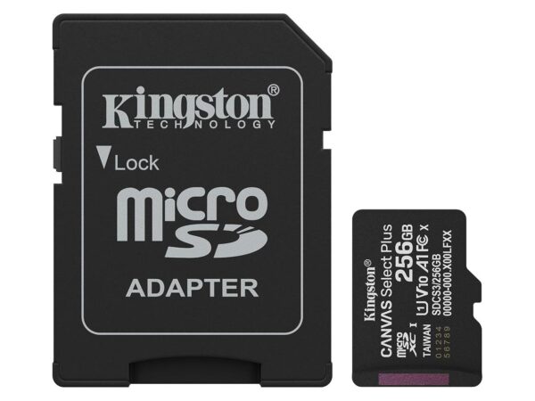 Kingston microSD 256GB Class10Canvas Select PlusSD adapter;100/85MBs,Class 10 UHS-I