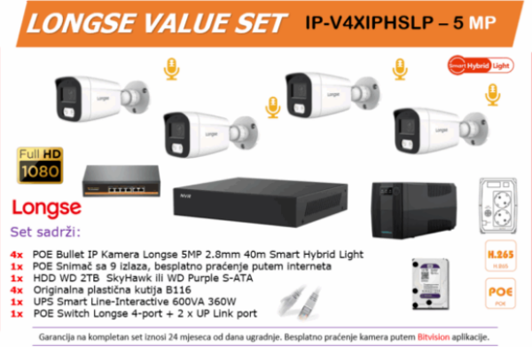 Longse Smart Hybrid Light IP POE SET IP-V4XIPHSLP – 5 MP + UPS