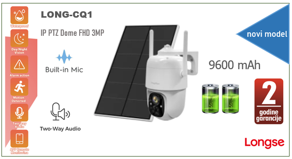 Longse Wi-Fi PTZ kamera 360 stepeni sa solarnim napajanjem i baterijom CQ1